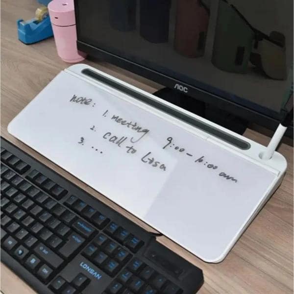 Du hast die Möglichkeit, auf der Tafel zu schreiben, wegzuwischen und neu zu schreiben, wodurch die Notwendigkeit von Haftnotizen und verstreuten Notizen auf dem Tisch entfällt.